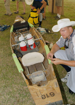 Pro Boat: (3/27) Maximum length 18’6″, minimum width 27″ at the 3″ waterline. Minimum bow height 15″, minimum stern height 10″, minimum depth at center 10″, minimum gunwale width 33″. Limited to two entrants with single blade paddles (no rudders).