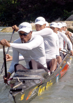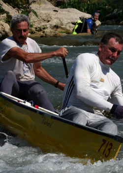 (Solo to 6 Person) There shall be no specification as to the type or size of craft used except that such craft must be propelled only by human muscle power and is limited to a maximum of six persons, all of whom are 40 years old or older at the start time of the race.